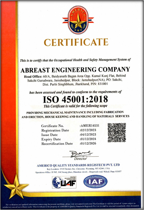 Being the organization, M/s Abreast Engineering Company, established in 1974 as a Partnership Firm, having its Registered OFFICE at 60/A BAIDYANATH BAGAN AREA BEHIND SAKCHI GURUDWARA JAMSHEDPUR – 831001, JHARKHAND, INDIA