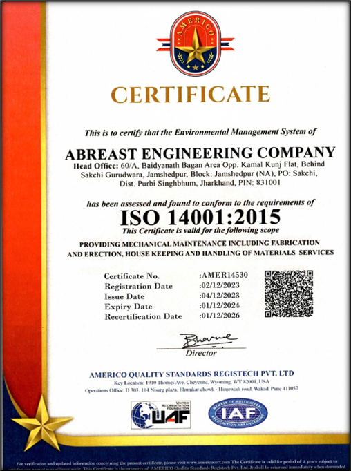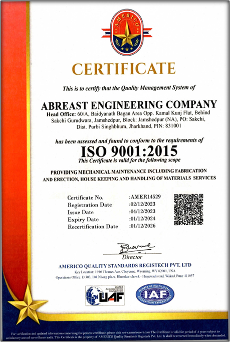 Being the organization, M/s Abreast Engineering Company, established in 1974 as a Partnership Firm, having its Registered OFFICE at 60/A BAIDYANATH BAGAN AREA BEHIND SAKCHI GURUDWARA JAMSHEDPUR – 831001, JHARKHAND, INDIA